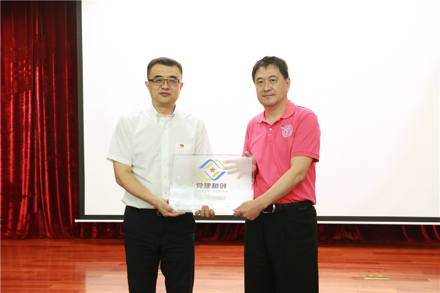 葛磊代表广州移动向我校赠送中国移动党建活动的“党建和创”纪念牌