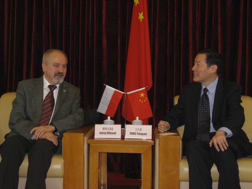 方凡泉对维特科夫斯基副校长和沃达斯科副校长一行的到来表示热烈欢迎,并感谢维特科夫斯基等为两校合作所做的努力。在维特科夫斯基的推动下,我校与什切青大学于2010年6月签订两校项目合作协议。广外已经向什切青大学派遣了12名交换生,也相互派遣了1名教师进行交换。我校师生在波兰受到了悉心的照顾,顺利地进行学习和工作。方凡泉表示,广外欢迎什切青大学的学子来我校就读感兴趣的专业,感受中国的文化,体验广外的学习氛围。我校教师、广东省国际战略研究院和国际服务外包研究院也希望与什切青大学就相关领域进行合作研究。