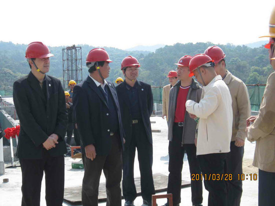 本网讯 3月28日上午,我校北校区新建云峰学生公寓工程进行主体结构封顶仪式,学校党委书记隋广军、副校长陈子锐在后勤处、资产管理处以及工程施工单位等有关领导的陪同下到现场参加封顶仪式。