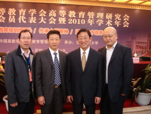 本网讯 12月30、31日,中国高教学会高等教育管理研究会第七届会员代表大会暨2010年学术年会在昆明举行,来自全国高校的领导、专家和教授约350多人参会。我校党委副书记许国彬和发展规划处处长曾用强作为代表出席大会。中国高教学会和云南省领导到会致词,云南师范大学党委书记伊继东致开幕辞。