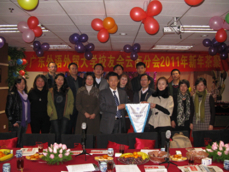 12月30日晚,许国彬在曾用强的陪同下出席了设在宏丰元茶室的云南校友会新年茶话会,并代表校友总会向云南校友会授旗。
