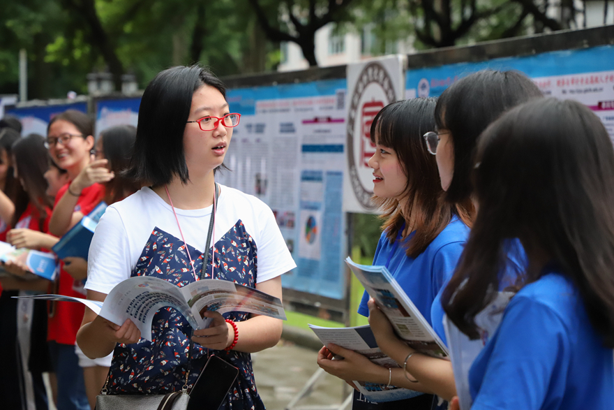 我校党委书记隋广军、校长石佑启等校领导相继来到咨询现场,了解各单位的组织准备工作。每到一个学院点,隋广军都会亲切地与工作人员交谈。他高度肯定今年的各项组织工作:“各个部门、学院的组织、宣传、服务等工作都做得很到位,很多领导、学科带头人都奔赴招生一线,体现了他们对学校形象的爱护与投入,这令我十分感动。”石佑启在走访摊位过程中,与驻摊位的学生和家长亲切交谈,同时,他也表达了对广大高考考生的期待:“希望各位考生能心想事成,考出理想的成绩,也欢迎各位学子报考我校,找到心仪的专业。”