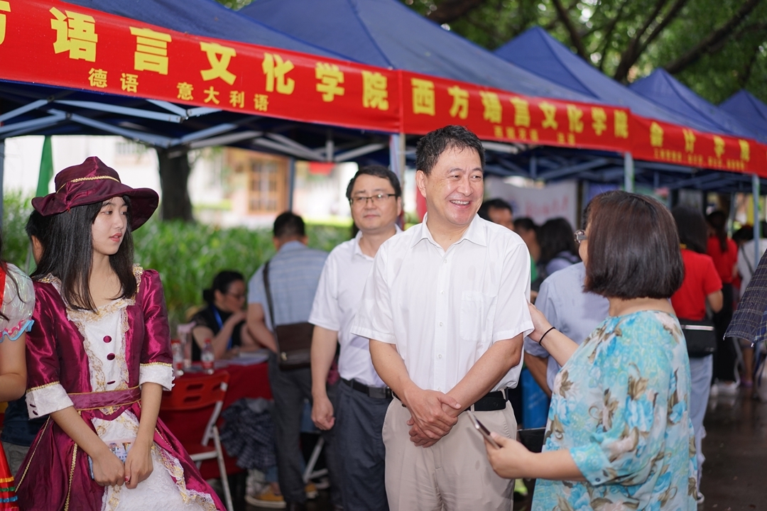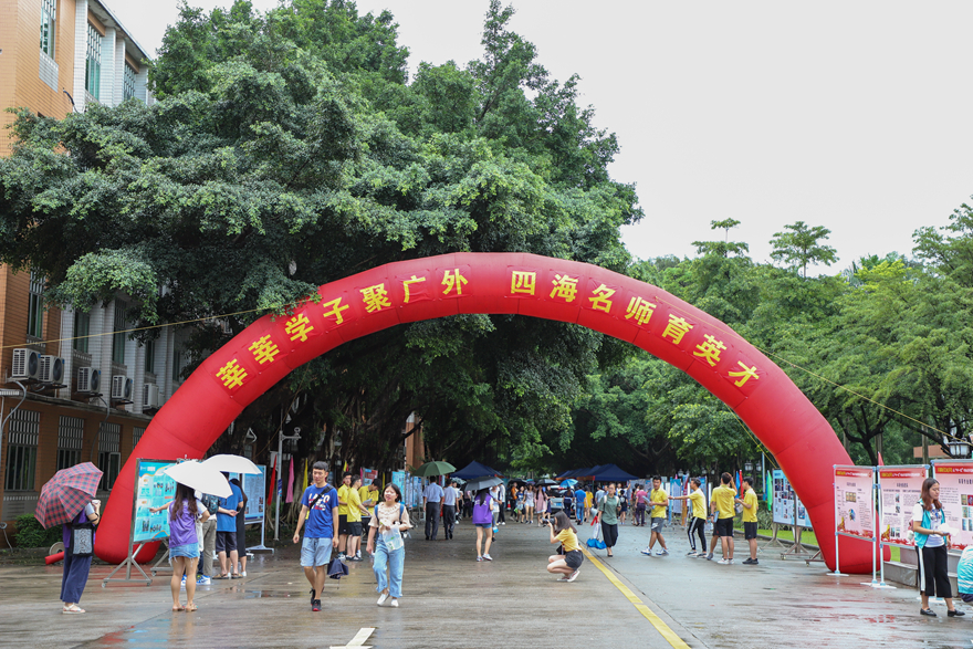本网讯 6月23日,“莘莘学子聚广外,四海名师育英才”的拱门矗立在校道上,我校迎来第19届校园开放日。淅淅沥沥的雨点阻挡不了家长与考生的热情,前来参加开放日的人数比往年大幅增加。一批又一批的学生与家长,纷纷前往各学院摊位了解情况,与接受咨询的教师和志愿者同学热情攀谈。校道两侧的众多宣传摊位除了发放宣传手册与布置二维码信息,还以别出心裁的方式吸引考生与家长前来咨询。