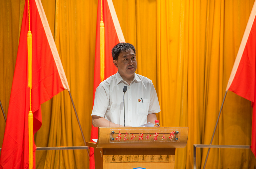 隋广军回顾了近年来我校党建工作取得的优异成绩,并用“1234”来概括近年来推进党建工作的体会,即:弘扬“一个价值观”(“卓越、诚信、包容、自信”的广外价值观);强化“两个意识”(主业意识和规矩意识);树立“三个导向”(讲正气的鲜明导向、讲实干的鲜明导向、讲创新的鲜明导向);突出“四个建设”(班子建设、队伍建设、平台建设、机制建设)。