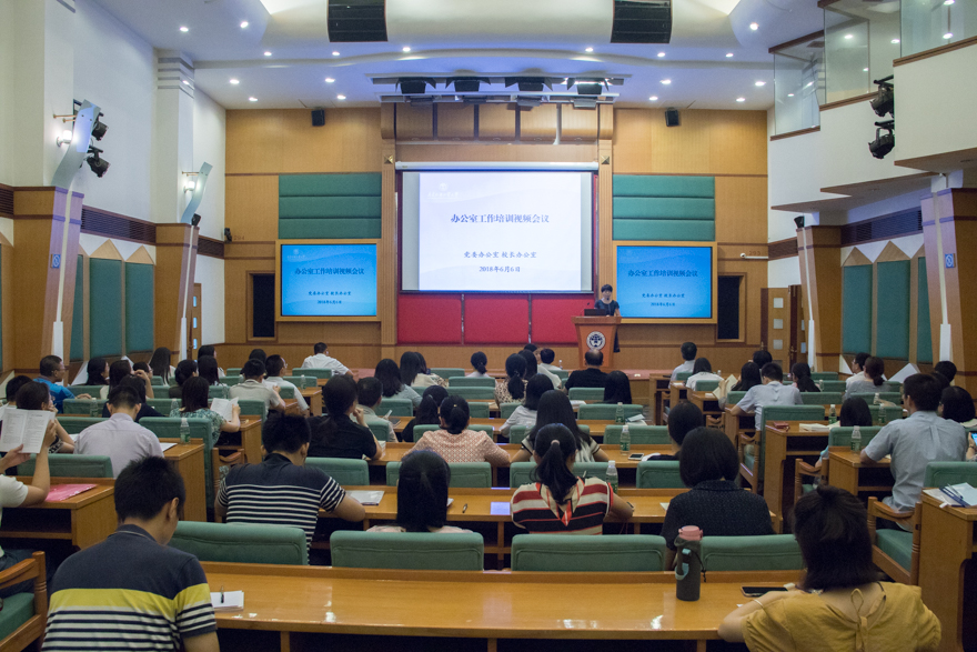 本网讯 6月6日下午,办公室工作培训视频会议于北校区国际会议厅举行,南校区以视频直播形式在办公楼第一会议室同步参与培训。此次会议结合新时代提出的新要求,探讨如何提升办文、办会、办事的能力和水平。党群、行政、教学、科研、教辅、直属、附属单位的公文管理、行政管理等人员及党办、校办全体工作人员共107人参加会议。