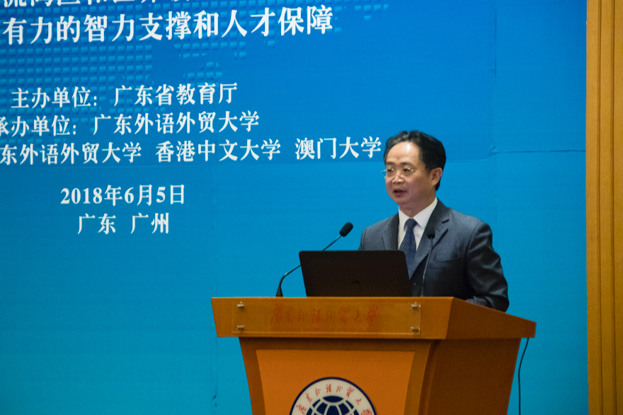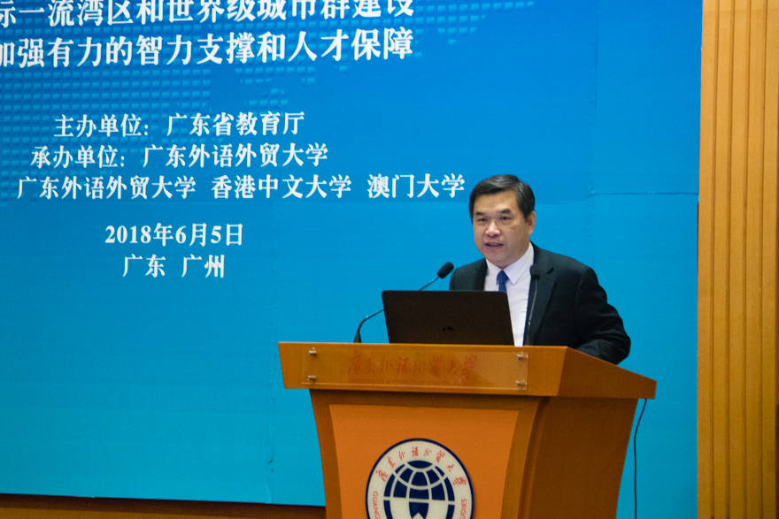 开幕式上,焦方太提到粤港澳高校交流事务负责人座谈会为促进粤港澳三地高等教育交流与合作提供了深入探讨和交流的平台,取得了显著的成果。目前粤港澳大湾区建设已提升到国家发展战略层面,粤港澳合作发展将迎来前所未有的历史机遇,同时也面临前所未有的挑战。我校作为一所国际化特色鲜明的大学,历来重视与港澳地区的教育交流,与众多的港澳高校建立了密切的合作。粤港澳大湾区建设提出后,广外发挥学校的特色,成立了粤港澳大湾区研究院,致力于粤港澳大湾区建设的理论创新、学科发展和人才培养及服务“一国两制”框架下粤港澳深度融合的新体制建设。广外将在现有基础上,进一步加强与港澳地区高校的合作,为促进粤港澳大湾区的教育深度合作作出积极贡献。