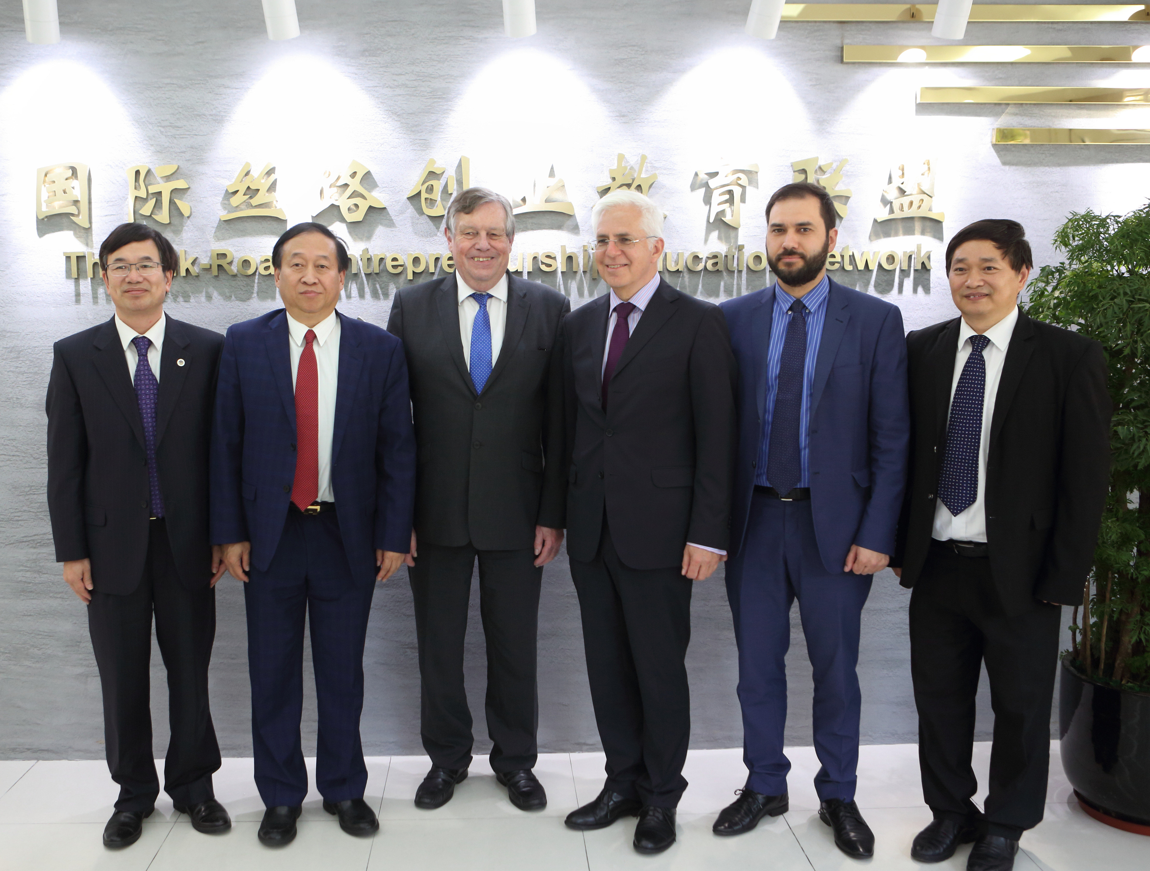 何传添与评审专家在国际丝路创业教育联盟广州基地合影