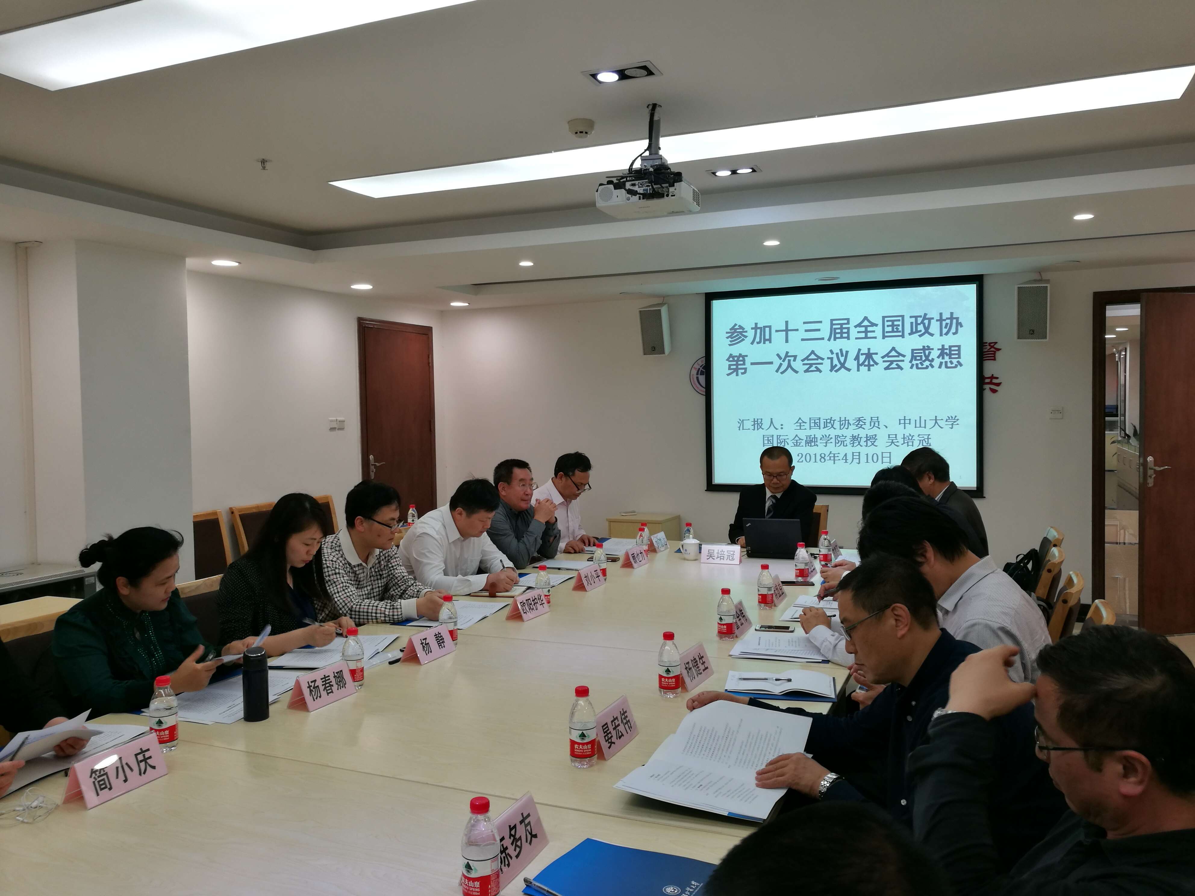首先,吴培冠从大会基本情况、会议特点、参会体会和个人感想等几个方面详细介绍了参加十三届全国政协第一次会议的体会感想和大会的相关内容。他表示,这次会议是在全国各族人民深入学习贯彻习近平新时代中国特色社会主义思想和中共十九大精神,决胜全面建成小康社会、开启全面建设社会主义现代化国家新征程的重要时刻召开。全体委员以高度的政治责任感和历史使命感,认真履行职责,深入协商讨论,积极建言献策,展现了新时代政协委员的新气象新作为。会议务实高效、风清气正、圆满成功,彰显了中国特色社会主义民主政治的优势特点和生机活力,是一次承前启后、继往开来的大会,是一次民主团结、求实奋进的大会。