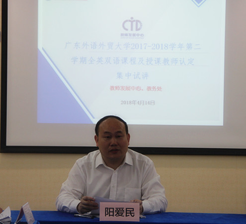阳爱民表示,广外定位于国际化特色鲜明的高水平大学,国际化全英课程和教师队伍建设是大学教育国际化的重中之重,全英/双语课程及教师认定工作是实现学校人才培养目标的助推器。学校十分重视此项工作,于上学期出台了管理办法,成立了工作机构并制定了工作方案,启动了全英/双语课程及授课教师认定工作。为了更好地进行本学期的认定工作,阳爱民提出几点要求:一是依据程序,独立评价;二是把握标准,严格评价教师是否具有用英语讲授专业课程的能力;三是持续培养,教务部门牵头做好全英/双语课程的建设规划工作,形成系统化的全英课程体系。教师发展中心要加大对全英、双语教师的培养力度,构建体系化、进阶式的英语授课能力提升培训。力争把广外的全英/双语课程及授课教师队伍建设做出特色,做出水平。
