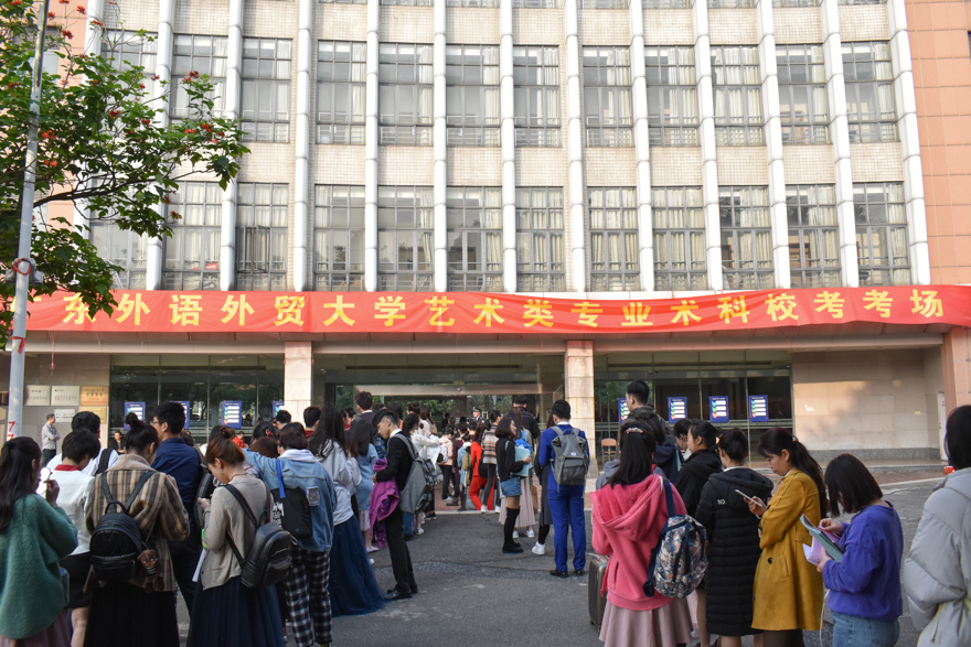 艺术楼前排队进入考场的队伍
