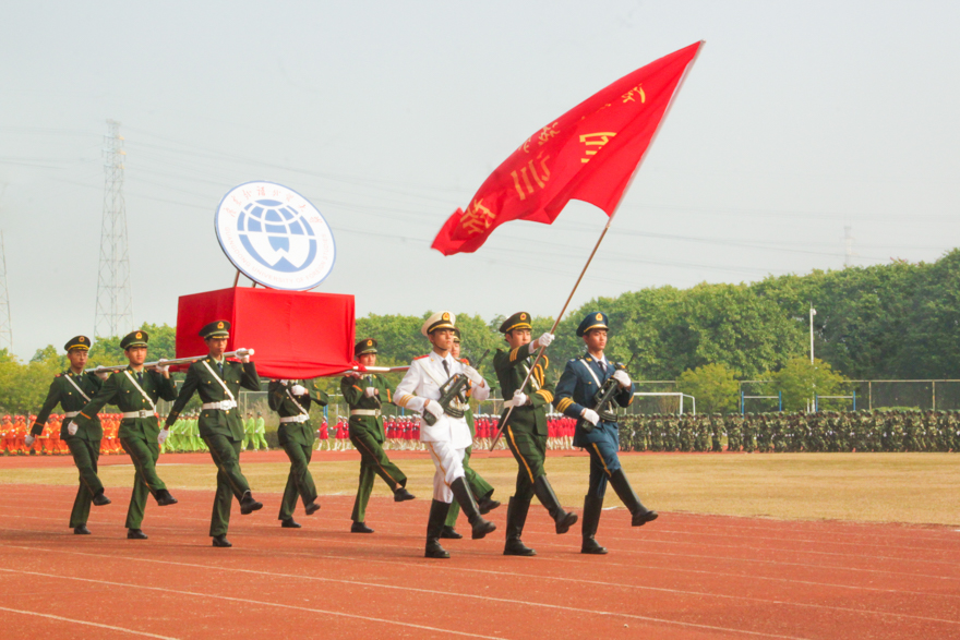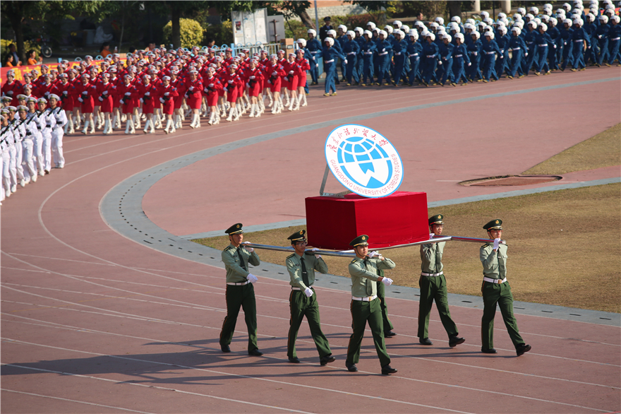 本网讯 1月19日上午,2017级本科生军训汇报表演暨总结表彰大会在南北校同时举行。今年是我校首次冬训,同学们经历了14天风雨与阳光的洗礼,克服时间短、任务重、天气多变等困难,在分列式表演中他们动作整齐划一,步履矫健,在军训技能表演中他们行动敏捷,似蛟龙猛虎,充分展示了良好训练成果,赢得现场的阵阵喝彩。广东省军区、学生军训办公室专职副主任韩广社,广东省教育厅体卫艺处副调研员董业权,广州市番禺区国防教育训练基地副主任黄光忠,我校党委书记、校长隋广军,党委副书记石佑启、李云明,副校长刘建达、刘海春、焦方太等出席汇演。