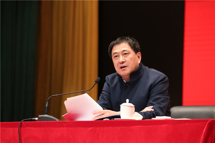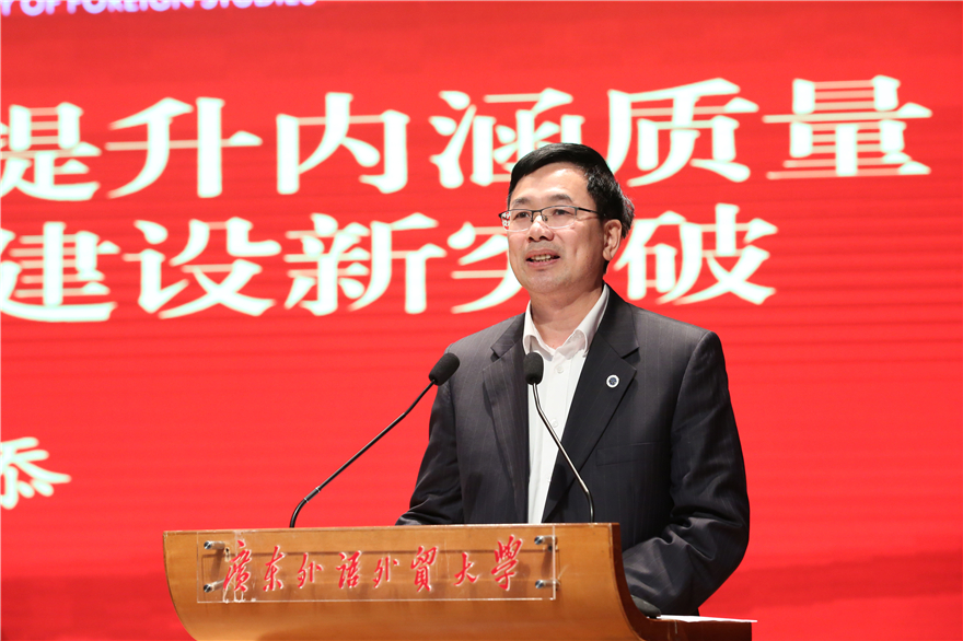 在总结成绩的同时,隋广军结合党的十九大报告,认真分析目前学校发展中存在的问题,指出应当以历史的高度、发展的眼光来看待当前的局面,正确认识学校所处的阶段特点和全新的历史方位。面对国家高等教育战略布局的调整,面对国家、地方的紧迫需求,如何选择发展重点、规划发展路径,争取办学效益的最大化,隋广军明确提出“明方向、冲一流、强内涵、树特色”的原则,围绕“建设国际化特色鲜明的高水平大学”的目标定位,强调在以下四个方面精准施策:一是要对接需求,立足实际,推进学科专业布局和调整,实施差异化非均衡发展战略;二是要坚持创新,增强定力,切实提升人才培养质量;三是要深化改革,激发活力,确保提升内涵管理水平;四是要把准方向,营造氛围,建设良好发展环境。他要求领导班子在2018年继续推进深入学习贯彻党的十九大精神、认真筹备召开学校第四次党代会等工作,带着广外人的初心进行思考、规划、实践,为开创广外内涵式发展的新时代而不懈奋斗。