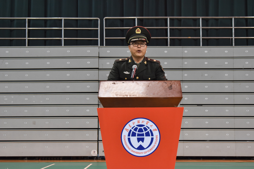 刘海春指出,今年是我校军训历史上首次在学期末、冬天军训,对此,他要求同学们以纪律为核心,刻苦磨练优良作风,以荣誉为动力,努力争取最佳成绩,承担起“国家兴亡、匹夫有责”的历史使命感和时代责任感,传承广外“明德尚行、学贯中西”的校训,成长为文武兼备、知行合一的广外人。他还提到,我校近年来已有数十名学生成功投身军旅,报效祖国。他鼓励同学们携笔从戎,以报国为目标,积极参加征兵报名。