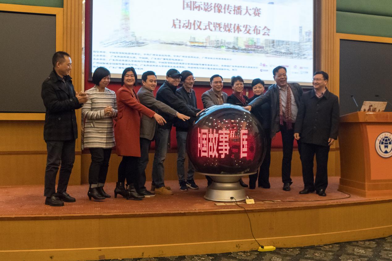 本网讯 1月5日,“讲好中国故事”国际影像传播大赛启动仪式暨媒体发布会在北校区国际会议厅举行,我校副校长刘海春、中国高等院校影视学会副会长李幸,20多家中央及省内新闻媒体的记者和广东省国际传播后备人才培养基地第一期学员出席大会。本次大赛以“讲好中国故事,传播中国声音”为主题,旨在构建“中国话语体系国际传播”新模式,推进国际传播能力建设,展现真实、立体、全面的中国。