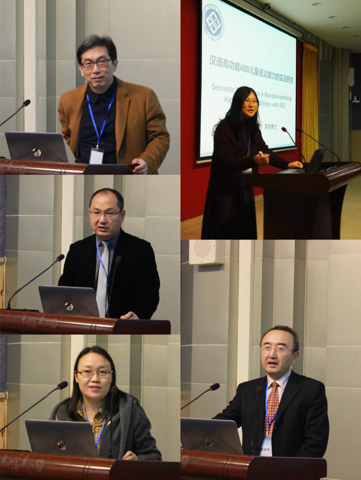 16日上午,香港教育大学张显达、深圳市儿童医院言语治疗科杨峰、南京师范大学梁丹丹、中南大学苏怡和我校何晓炜分别作主旨发言。张显达阐述了普通话特殊型儿童语言特征和鉴别普通话特殊型儿童的语言学方法。杨峰采用视频案例展示了诊疗自闭症的核心障碍,同时介绍了自闭症儿童语言能力测评的前沿方法,为本领域的深入研究与实践提供了全新思考。梁丹丹详细讲述了自闭症儿童语用能力的主流研究方法。苏怡分享了有关高功能自闭症儿童语言能力的实证研究成果。何晓炜从理论视角阐述了儿童语言障碍的语言学问题。