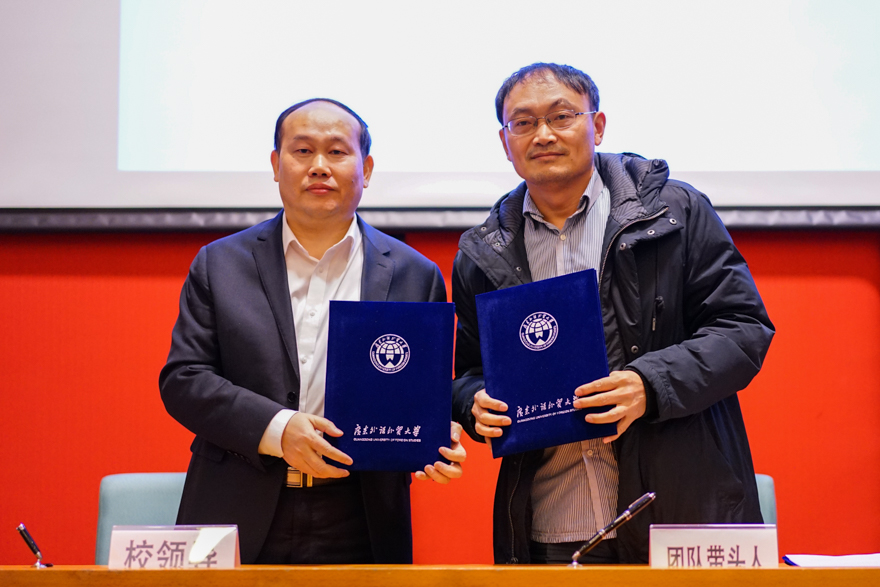 阳爱民与4位新立项团队带头人分别签订合同,希望团队带头人、依托单位、科研处通过签约仪式,重视团队建设。阳爱民强调,团队是有组织而进行的科研活动,团队带头人要有契约精神,有担当;依托单位要积极主动关心和了解团队,解决团队在建设中遇到的实际困难;科研处要做优秀的服务者,能为团队提供便携式服务,要在国内外积极宣传团队成果。