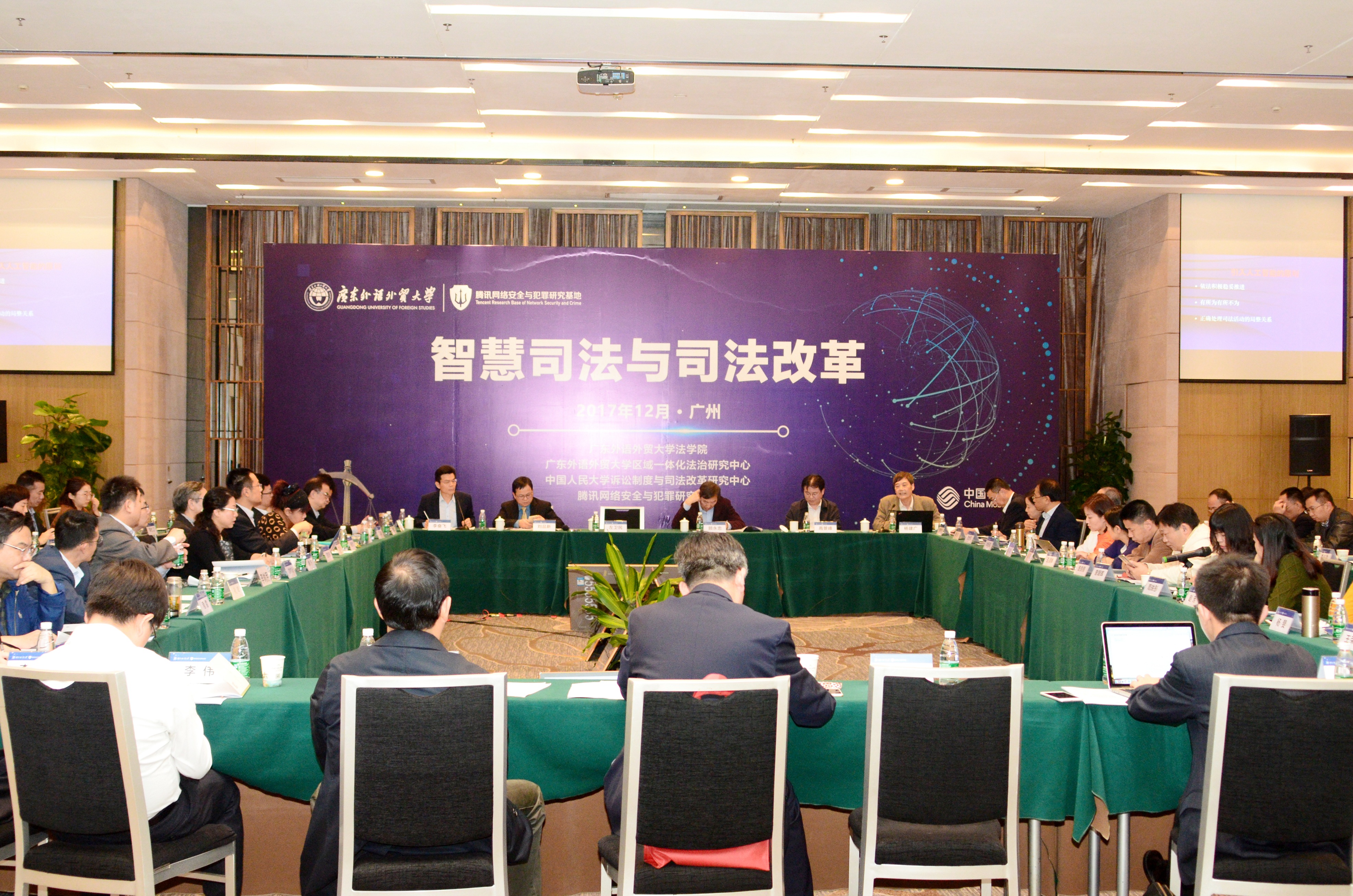本网讯 12月2日,“智慧司法与司法改革”研讨会在广州召开,主题为“智慧司法与司法改革”,下设“智慧法院”、“智慧检务”、“智慧警务、智慧司法与证据制度”三个单元。每个单元包括主题报告、与谈与评议、自由讨论三个环节。研讨会由我校法学院、我校区域一体化法治研究中心、中国人民大学诉诉讼制度与司法改革研究中心和腾讯网络安全与犯罪研究基地共同主办。来自全国人大法工委、中央政法委、最高人民法院、最高人民检察院等理论与实务部门的八十余位专家学者,以及新华社、光明日报、人民日报、法制日报等十多家新闻媒体记者朋友出席了会议。