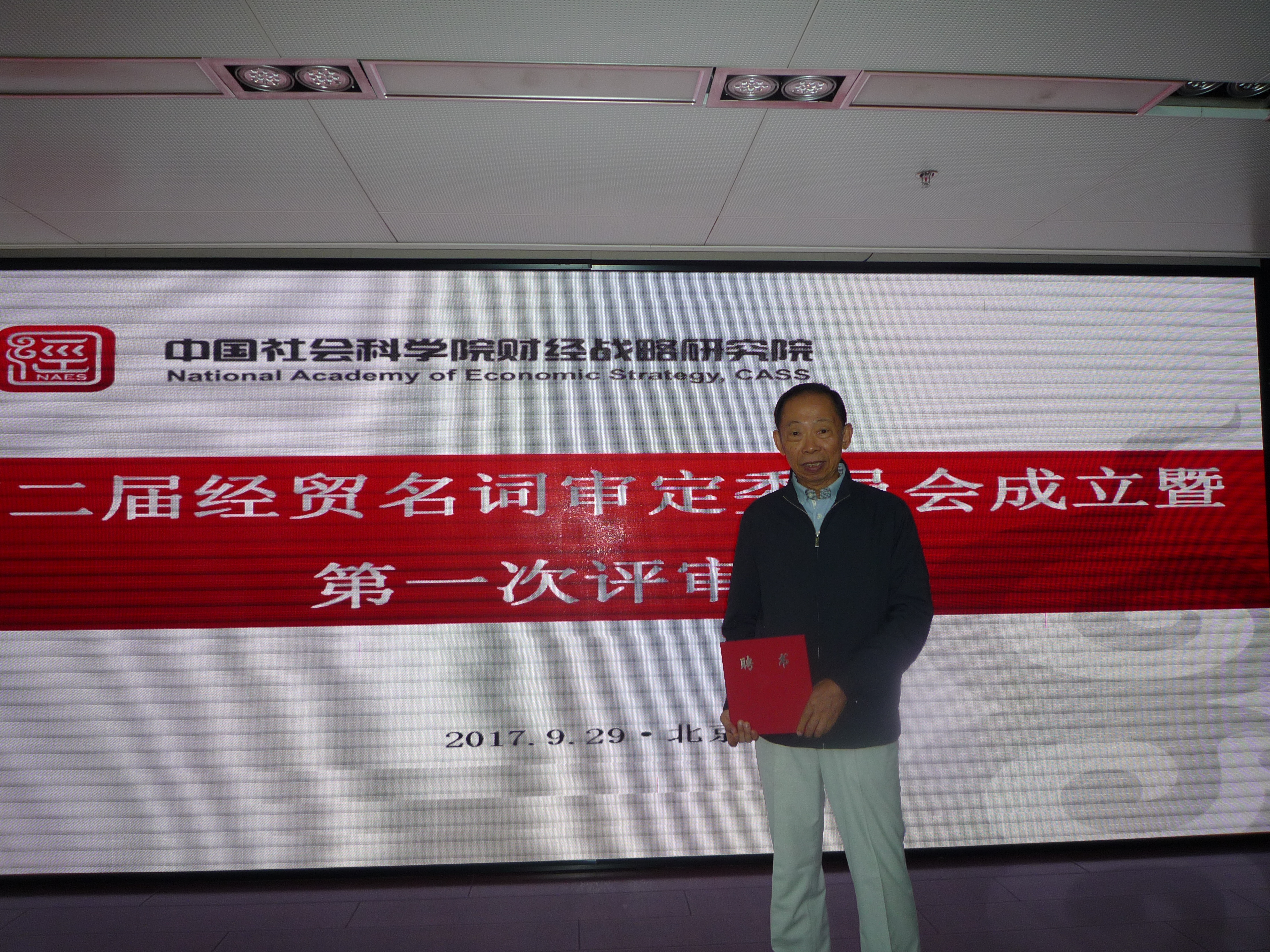 本网讯 9月29日,全国科学技术名词审定委员会第二届经贸名词审定委员的聘任仪式暨工作会议在中国社会科学院报告厅举行。我校董小麟教授再次获聘经贸名词审定委员会委员,是华南地区进入该委员会的惟一成员。本次工作会议上,董小麟应邀就本次经贸名词的遴选和定义的原则与方法作会议发言。中国社会科学院学部委员张卓元、中国国际经济交流中心首席研究员张燕生等20人出席会议。