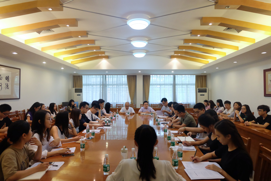 本网讯 9月22日,校级学生组织干部在北校区行政楼第二会议室举行座谈会,集体学习座谈校党委书记、校长隋广军在新生开学典礼上提出的“卓越、诚信、包容、自信”八字“广外价值观”。校关工委主任冯益谦受邀作辅导报告。座谈会由校团委书记苏奕主持。