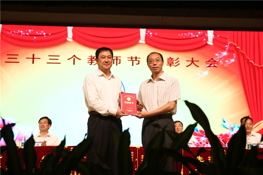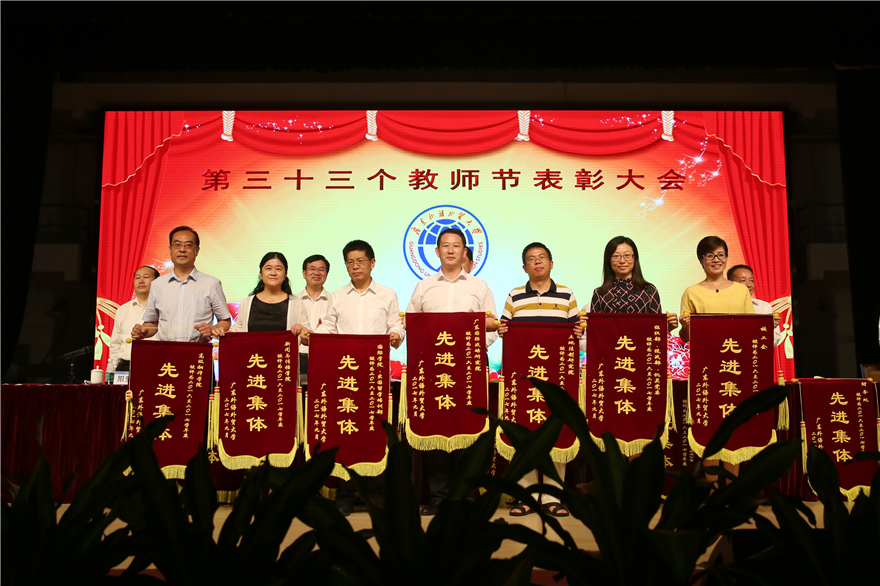 本网讯 金秋时节,丹桂飘香。9月7日下午,我校全体教职工齐聚一堂,在云山会堂庆祝第33个教师节暨表彰大会。大会表彰了一批在过去一年中各方面工作表现突出的集体和个人,校党委书记、校长隋广军作表彰报告,校党委副书记李云明,副校长何传添、陈林汉、阳爱民、焦方太和全体教职工出席大会。大会由阳爱民主持。