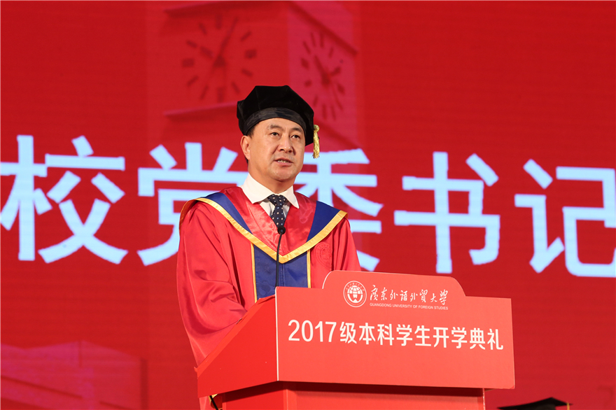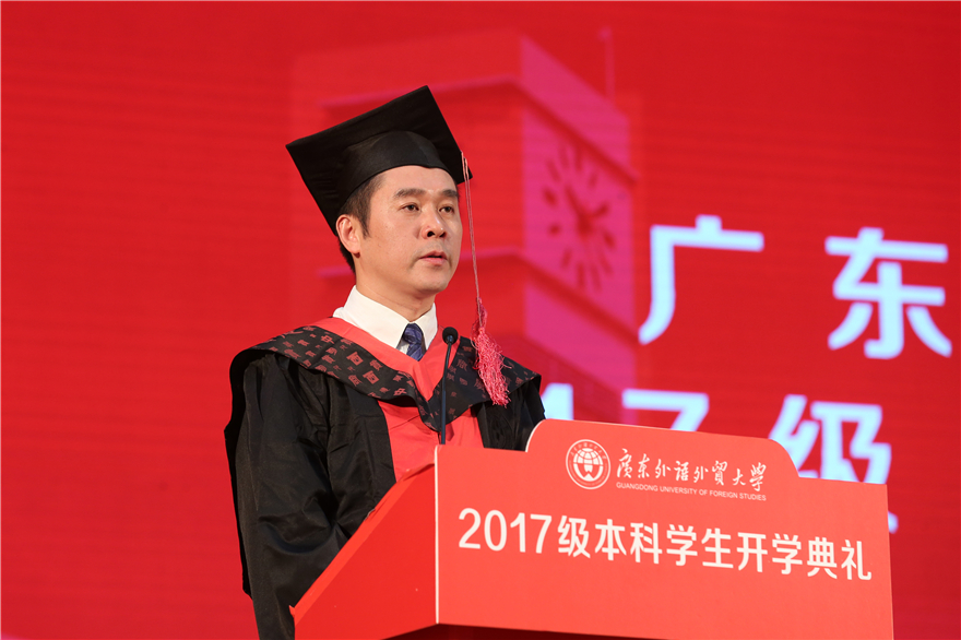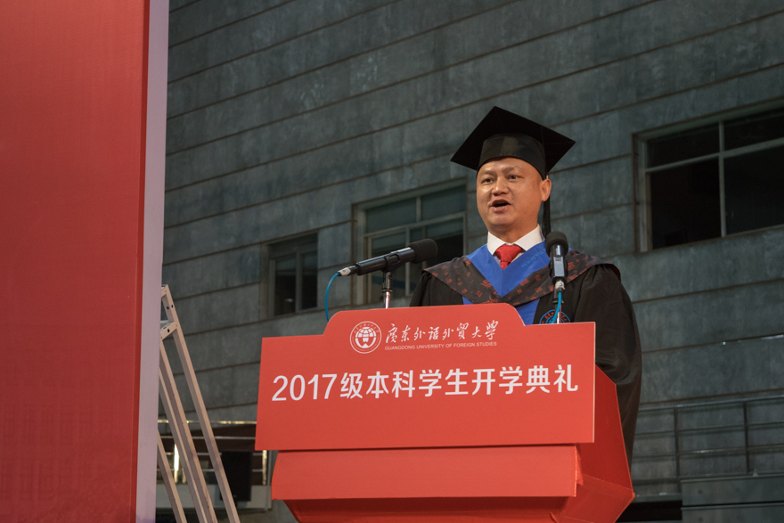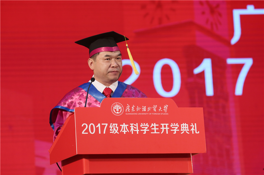 大家好!今天,对于同学们来说,是一个重要而难忘的日子,你们怀揣着憧憬和梦想,承载着企盼和祝福,即将开始大学生活,开启人生全新的旅程。在此,我代表广东外语外贸大学全体师生员工,向2017级所有新同学,表示最衷心的祝贺和最热烈的欢迎!