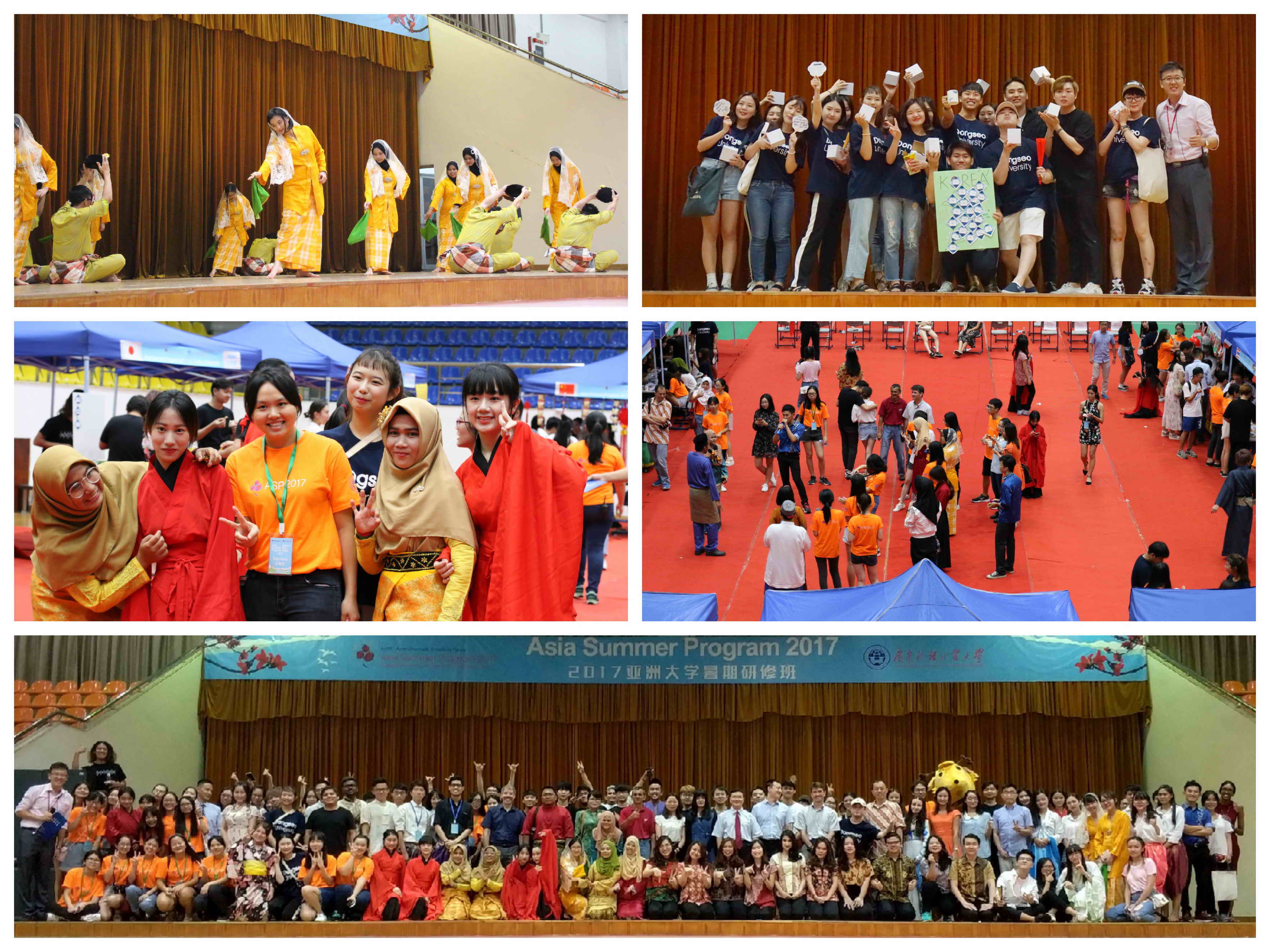 运动日和文化晚会在我校羽毛球馆举行,也是亚洲暑期研修班的传统活动。运动日通过团队竞技游戏,促进学员间的友谊和增强团队合作意识;文化晚会则通过摊位的特色布置和舞台表演,激励师生相互学习、探索、研究彼此的文化,增进彼此的交流和了解。