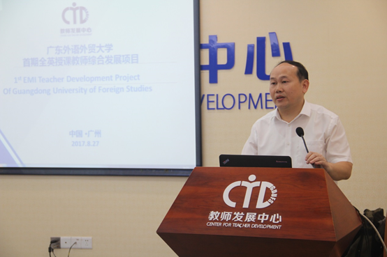 阳爱民对27名学员积极参与培训给予高度评价,对远道而来的导师表示热烈欢迎。他指出,作为一所国际化特色鲜明的大学,我校一直致力于教师及课程的国际化建设,从早期310工程,到现在的“五化”目标,学校各部门都在大力推动这一目标的实现。教师发展中心围绕提升全校乃至全省教师国际化发展水平这一重要目标,积极与国外高水平大学合作,从教学方法、课程设计、教学学术及国际学术论文写作等方面开设多项国际化教师发展项目,对广东乃至华南地区高校产生广泛影响。但在全英双语课程及教师队伍建设方面,我校仍存在多方面不足,教师利用英语讲授专业课的能力、科研国际化能力有待提高,学校的管理国际化水平也需逐步与国际水平接轨。在此背景下,教务处及教师发展中心开展全英/双语授课教师专项计划有其重要意义,学校希望以此为重要契机和抓手,对我校全英/双语授课教师开展项目轮训及授课能力评估,实现全英/双语课程认定及教师授课资格认定的规范化管理,切实促进我校教师教学的国际化和课程的国际化。