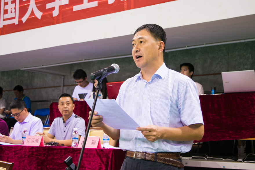 我校党委书记、校长隋广军出席开幕式并发表致辞。他介绍说:“广外历来重视开展体育活动,坚持将‘健康第一、终身体育’的理念融入人才培养体系。”并重点展示了我校在体育方面的成绩,奥运获奖选手罗茜、冯珊珊一批优秀运动员屡创佳绩,在2010年广州亚运会排球比赛、2016全国大学生羽毛球锦标赛等大型体育赛事的承办积累了丰富的经验等。他相信,本次大赛将会推进高校羽毛球和大学生体育健康的发展,并预祝大赛圆满成功。
