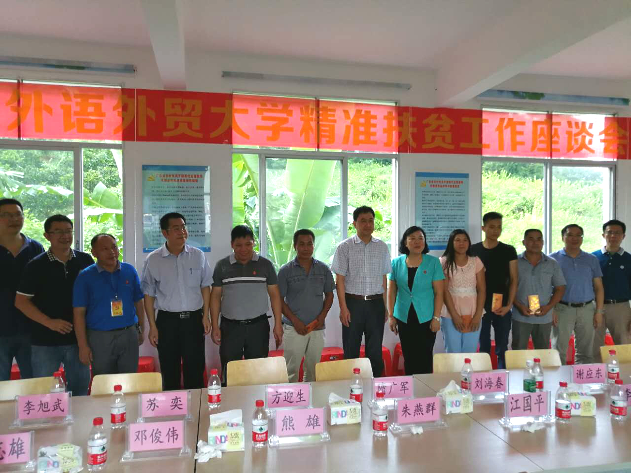 隋广军一行首先与阳山县委副书记、政法委书记朱燕群,县政协副主席熊雄,岭背镇、蒲芦洲村相关领导、我校扶贫驻村工作队进行座谈。隋广军表示,我校对当地的扶贫工作不只是帮扶,更是互帮互学互助的过程,他肯定了扶贫驻村工作队的工作成效,表示学校会继续支持并配合当地各级政府推进扶贫工作和学生服务项目,克服困难,积极打造美丽乡村。刘海春代表学校党委对扶贫工作提出了两个要求:第一,需进一步加大扶贫力度,除了物质帮扶外,精神上扶贫也极为重要;第二,要重视探索绿色扶贫工作和“造血型”扶贫之路,学校与地方共谋可持续发展。