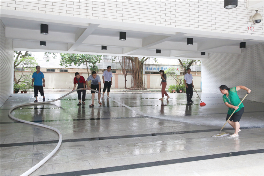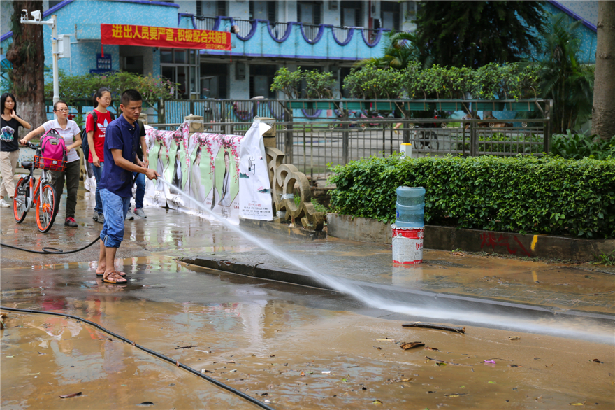 本网讯 6月3日晚8时许,广州突降特大暴雨,降雨持续了近3小时,导致我校北校区部分低洼地段的校道受淹,30余间学生宿舍浸水。学校第一时间启动应急预案,确保学生生命财产安全。6月4日上午,学校相关部门采取灾后清洁措施,截至记者发稿前,校园受浸区域的大部分淤泥已经清理干净。