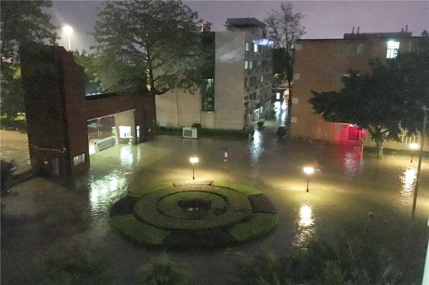 特大暴雨过后部分校园区域受浸