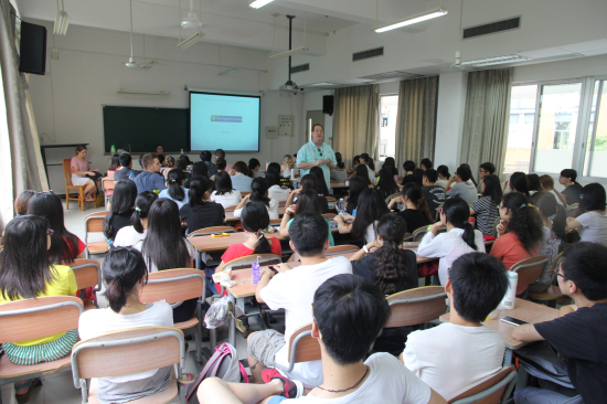 2013年5月28日,南校区教学楼B208教室,一大早就被学生挤得满满。在这里新闻学院广告系的学生迎来了一堂别开生面的课,授课教师是来自美国西弗吉尼亚大学教授James Ebel,他把一门极富创造性的课程——《整合营销传播学课程(Integrated Marketing Communications,IMC)》带进广外课堂。 James重点向学生教授如何培养创造力和突破性思维,并组织由中国学生和外国学生混合组成的小组,到电脑城开展田野调查。 James别具一格的授课方式和课程设计让广外学子留下了深刻印象,广告班蔡同学课后表示:“James的课启发自己更多需要与组员通过讨论、实践、实地考察去了解市场。”