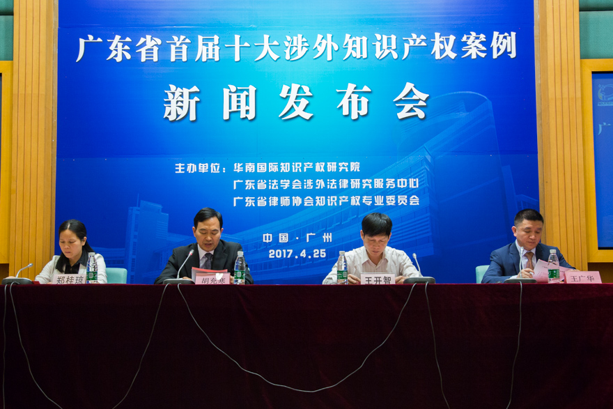 本网讯 4月25日,广东省首届十大涉外知识产权案例新闻发布会在我校北校区国际会议厅举行。本次涉外知识产权案例的评选为深入挖掘案件的学术研究价值,充分发挥典型案例的借鉴示范作用提供了可能性。发布会由华南国际知识产权研究院、广东省法学会涉外法律研究服务中心、广东省律师协会知识产权专业委员会共同主办。