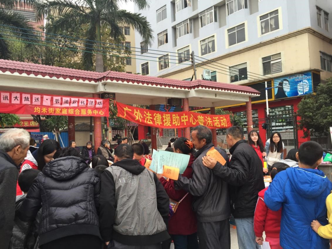 法援中心秉承“以法之手,援您之需”的服务理念,服务领域涵盖合同纠纷、劳动争议、婚姻家庭、侵权等民事纠纷,服务内容包括法律咨询、文书撰写、诉讼代理、普法宣传等公益法律服务。成立至今,中心接受法律咨询800余起,出具法律意见书155份,代理案件22起,进行校内外法制宣传和普及活动共70余场。自2014年9月以来,中心开展“点灯计划”定点法律援助活动,与广州越秀区社区矫正教育帮扶中心、番禺区大龙街家庭综合服务中心等10余个基层组织签订定点法律援助合作协议,共举行普法讲座、普法摆摊或矫正授课50余次,同时通过当面解答或微博微信值班接收居民的法律咨询。2013年荣获广东大学生“福彩公益优秀团队奖”,2015年荣获广东省首批学雷锋活动示范点。
