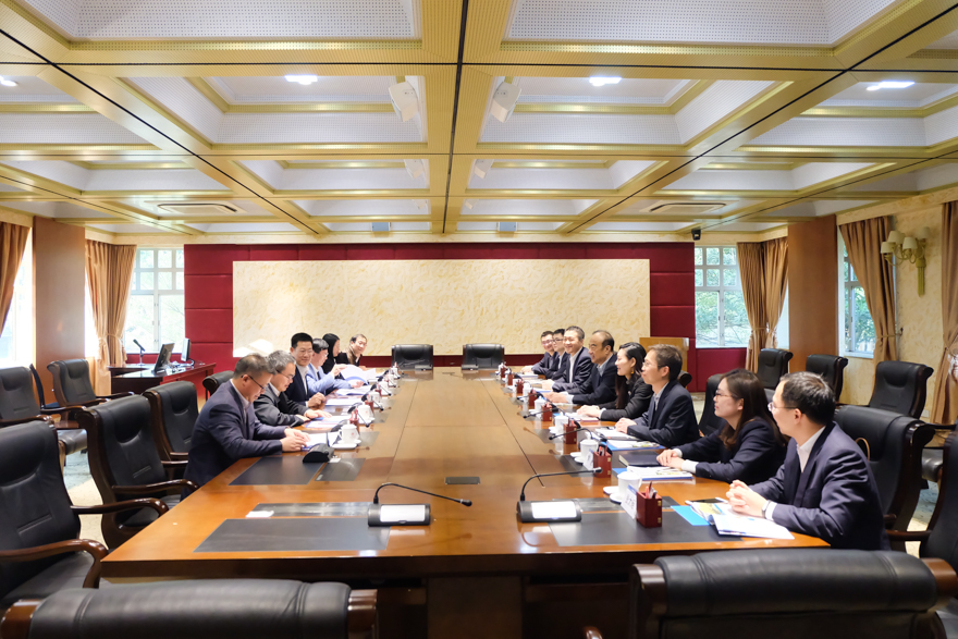 本网讯 3月3日下午,中国银行广东省分行行长李瑞强和行政事业部副总经理陈欣明一行来访我校,就与我校国际战略研究院和传神多语港的合作项目进行洽谈。我校校长仲伟合与副校长何传添在北校区第一会议室会见来宾。