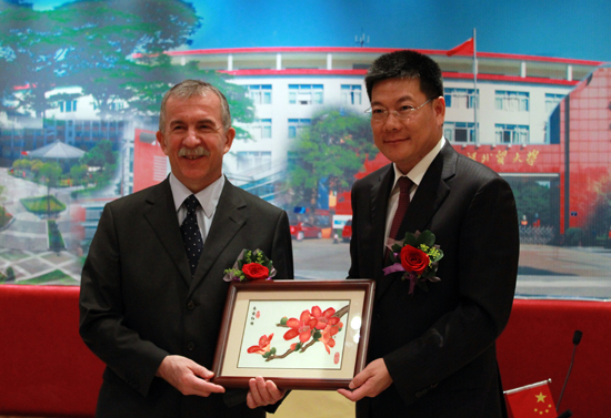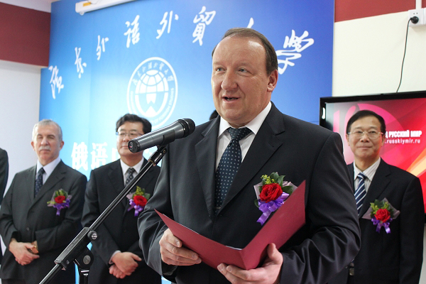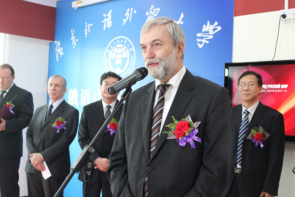 马尔科夫则再次感谢广外为建设俄语中心付出的努力。他谈到,俄语世界基金会推广俄语,在世界各地积极建设俄语中心,有很好的运作并且带来了实际的效果。俄罗斯重视与中国文化方面的合作,而教育是文化合作的重要领域。他希望将来有更多的学生能学习俄语以及俄罗斯文化,同时也希望广外能与更多的俄罗斯高校进行长远的合作。