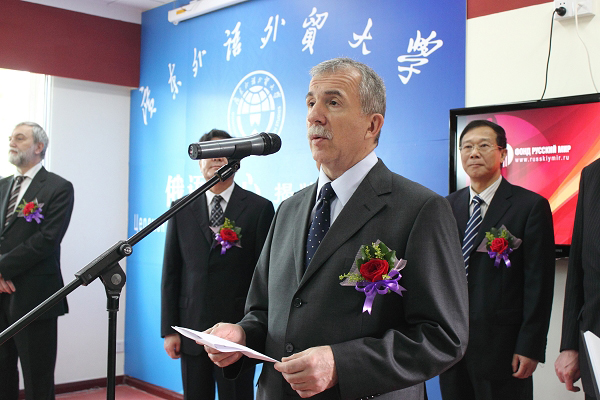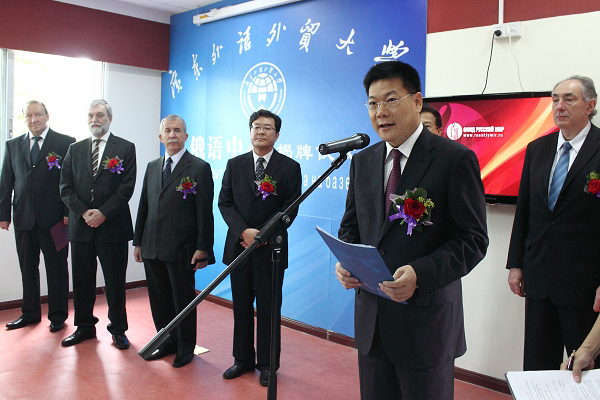 伊斯特拉托夫介绍道,广外俄语中心是中国第六所、全世界第七十一所俄语中心。他认为在广州建立俄语中心具有重要意义。同时他也感谢广外为俄语中心的建立所做出的努力,并祝贺我校俄语专业的学生有了一个“俄语之家”。