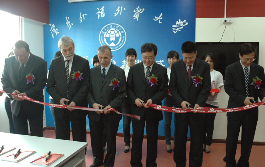 日上午,广东外语外贸大学俄语中心揭牌仪式在北校区隆重举行,华南地区首家俄语中心落户广外。俄罗斯总统助理奥列格·亚历山大·马尔科夫、俄罗斯驻广州总领事梅德韦杰夫、俄语世界基金会副执行总裁伊斯特拉托夫、俄语世界基金会亚非地区项目经理多拉拉亚、俄语世界基金俄语中心工作保障部主任谢尔盖伊切夫、广东省教育厅副厅长魏中林、我校校长仲伟合、副书记陈建平、副校长方凡泉等出席了此次揭牌仪式。揭牌仪式由方凡泉主持。 据悉,广外俄语中心由俄罗斯“俄语世界”基金会出资建设,以图书馆和多媒体中心形式运作。俄方赠送的藏书类型包括文化艺术、科学教育、语言、历史、社会和现代俄罗斯等;多媒体应用包括俄文网络资源、教学录像、电影等。广外俄语中心旨在推广俄语语言、俄罗斯文学和艺术,为华南地区的俄语教学、科研提供支持和帮助,促进中俄文化、教育和学术的交流。