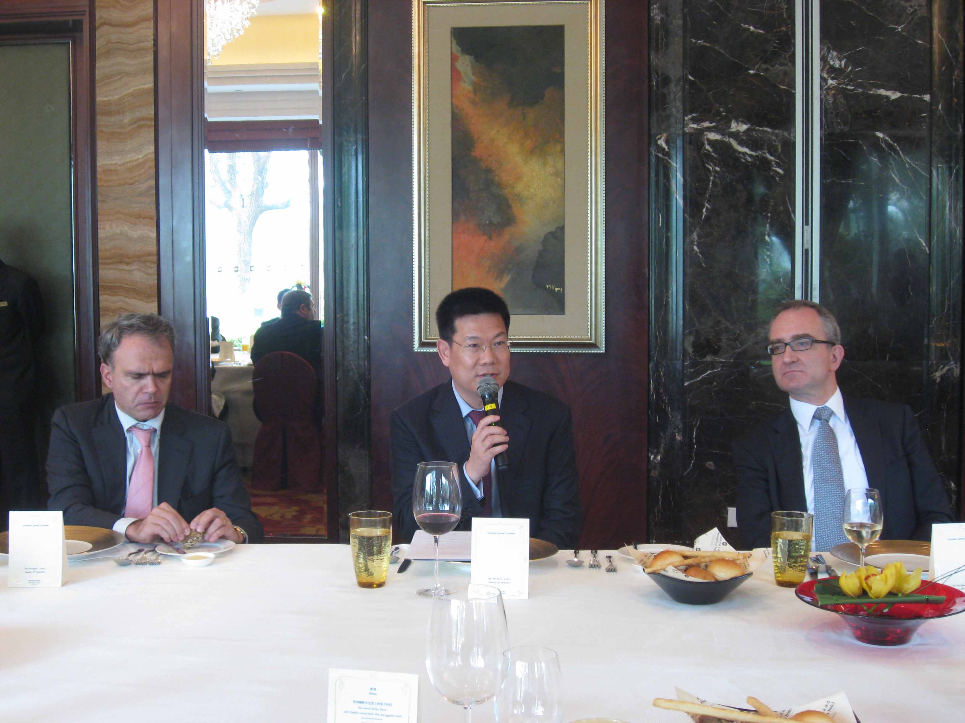 仲伟合的发言受到与会各国总领事的积极反响。午餐过程中,英国驻穗总领事Alastair Morgan 先生、法国驻穗总领事Jean-Raphaël Peytregnet 先生、比利时驻穗总领事Johan DHalleweyn先生、加拿大驻穗总领事François Rivest先生等分别就大学的社会服务、学校特色、学生就业、跨文化交流、学生交换等多方面的问题提问,仲伟合结合我校的情况一一作答,整个午餐会的交流内容丰富、气氛轻松。