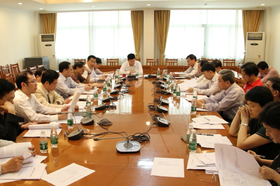 本网讯 4月13日下午,我校学术委员会会议在北校区第二会议室举行。会议进行了广东省高等学校高层次人才项目评审推荐,并就《广东外语外贸大学科研创新团队项目建设与管理办法》征求意见。校长、校学术委员会主任仲伟合,校党委副书记陈建平,副校长董小麟,副校长、校学术委员会副主任石佑启、校学术委员会委员、人事处处长方迎生、科研处处长阳爱民等出席了本次会议。会议由仲伟合主持。
