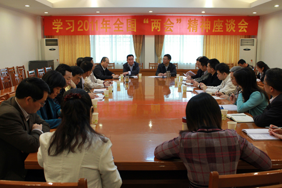 本网讯 4月1日上午,学习2011年全国“两会”座谈会在北校区行政楼第二会议室召开。校党委副书记、纪委书记陈建平,全国政协委员、副校长顾也力以及各基层党委、党总支部、直属党支部书记、各民主党派和侨联会负责人、无党派代表人士、统战部干部等出席会议。会议由陈建平主持。