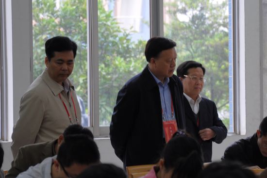 本网讯 3月27日上午时逢广东省公务员考试,广东省委常委、副省长肖志恒一行到我校南校区视察考点情况。我校校长仲伟合、副校长刘建达、考试中心主任魏辉良等陪同视察。