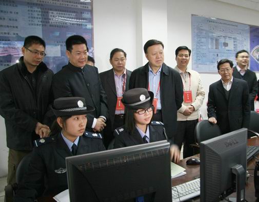 肖志恒一行还专门视察了考场监督系统,通过信息管理中心的监视器直接观察考场内情况。肖志恒对我校的考点工作给予了三点评价:第一,考场监督到位,运行规范。第二,三证合一,即考生身份证、准考证、考场前的考生信息栏合一,有效避免了作弊现象。第三,我校的教室监控系统分布在170个考场内,易于掌握考场现状。