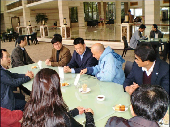 南沙资讯科技园总经理邝小明热情接待了校领导一行,在茶会中,双方都表示要积极探索新的合作模式,实现互利共赢,为广东的服务外包产业以及南沙区的发展做贡献。