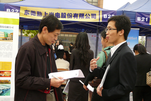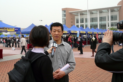 针对企业招聘难与学生就业难的“两难”问题,许国彬表示,学生不应对职位期望值过高,要摆正心态,脚踏实地。许国彬说,要在激烈的竞争中脱颖而出,必须勇于实践,并具备务实精神。许国彬要求我校应届毕业生在现阶段要转变就业观念,不要贪图安逸,不要太计较得失。职业没有高低之分,工作中得到的经验和锻炼能让人终身受益。许国彬建议,学生要及时将知识转化为能力,将所学的贡献于社会,也可以多参加三下乡等志愿者活动,努力提高自己。同时,他建议低年级的同学也可以到招聘会现场观摩学习,以便更清晰了解当前就业形势,而辅导员则应该指导学生提高就业竞争力和社会适应力,迈好自强第一步。
