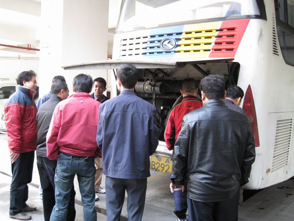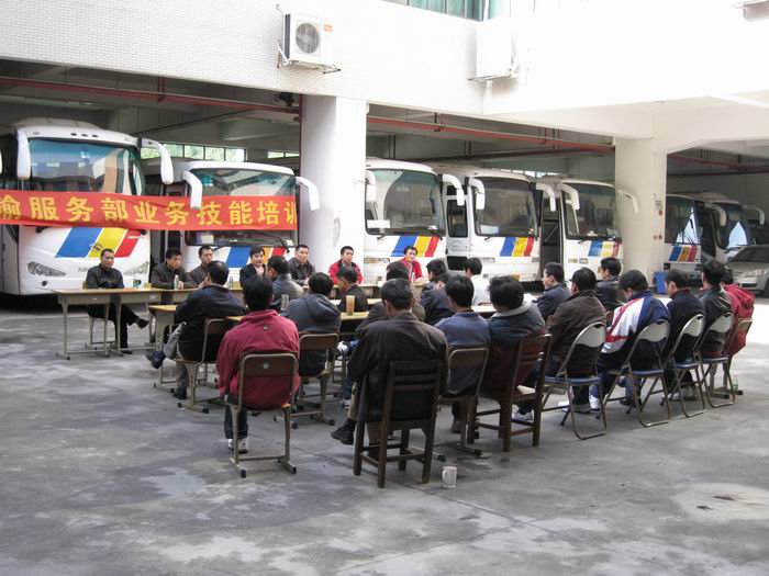 保卫处交通消防科科长杨枝培通报了校园交通和黄石路、白云大道等路段的交通状况,提出了行车安全的注意事项;国际交流处交流科吴峻峰就外事礼仪礼节接待作了通俗易懂的讲解;最后二汽修理厂的技师在一台大巴前做了车轮维修实操培训,并与司机们进行了技艺切磋、交流。
