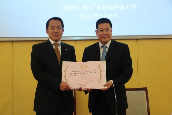仪式后,钟育赣主持了著名教授论坛147讲,他首先对崔耕受聘为我校云山讲座教授表示诚挚的祝贺。“要实现广外的‘十年腾飞’的计划,争取在十年内成为华南地区国际化企业人才培养基地,崔耕的加盟非常给力”,钟育赣如是说。