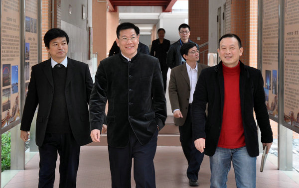 仲伟合一行先是饶有兴致地参观了中山外校的教学楼、科艺楼、宿舍楼等,并对学校的基础设施建设情况作了详细了解。中山外校洁净的校园环境,优良的师生风貌,给大家留下美好的印象。