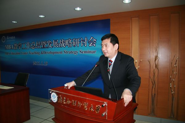 会上,孟庆轩作了主题发言。他指出,愈发激烈的市场竞争要求MBA是一个需要激情和投入的Business of business school。接着,他分享了自己关于我校MBA发展战略的思考心得。首先,他认为整合我校资源筹办DBA(工商管理博士)项目,使之与MBA项目强势互补,可以起到借船出海,带动我校MBA项目发展的作用。他进而从MBA、EMBA教育发展历史以及经济社会发展等方面对创办DBA项目做了可行性分析。孟庆轩说,好的大学和好的MBA项目是不可分割的。一方面,从某种程度上说MBA的品牌价值是大学价值的延伸;而另一方面,MBA项目也要努力凸显自身的价值。他认为只要不断撬动资源、谋求创新,准确定位并不断提高内在价值、做好宣传推广项目,短期内实现广外MBA异军突起指日可待。最后,他希望大家群策群力共同为MBA的发展出谋划策。