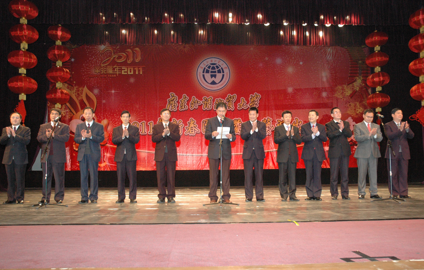 隋广军代表学校回顾了广外在2010年取得的成果,肯定了2010年是广外承前启后、继往开来的一年,是硕果累累和十分“给力”的一年。隋广军表示,走进2011,广外将进一步坚定信念,锐意进取,求真务实,进一步深化学校教育管理体制改革,推动学校教育事业科学发展,进一步加快我校建设国际化特色鲜明的高水平教学研究型大学进程,为实现“十二五”规划、为实现广外“十年腾飞”的目标打下良好的基础。隋广军与全体校领导一起,齐声祝愿全体教职员工及离退休老同志新年快乐、身体健康,工作顺利,家庭幸福!